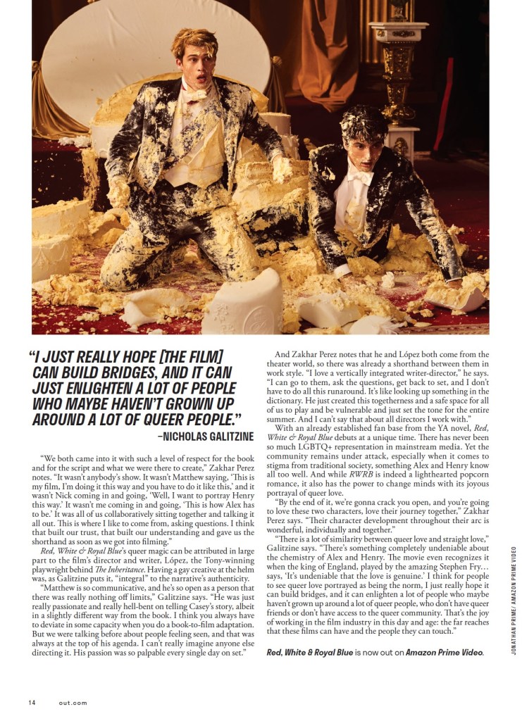 Profile on actors Taylor Zakhar Perez and Nicholas Galitzine of Amazon Studios’ Red, White & Royal Blue, from the September/October 2023 issue of Out. Read here.