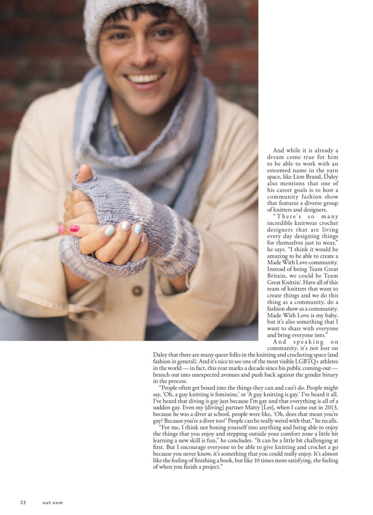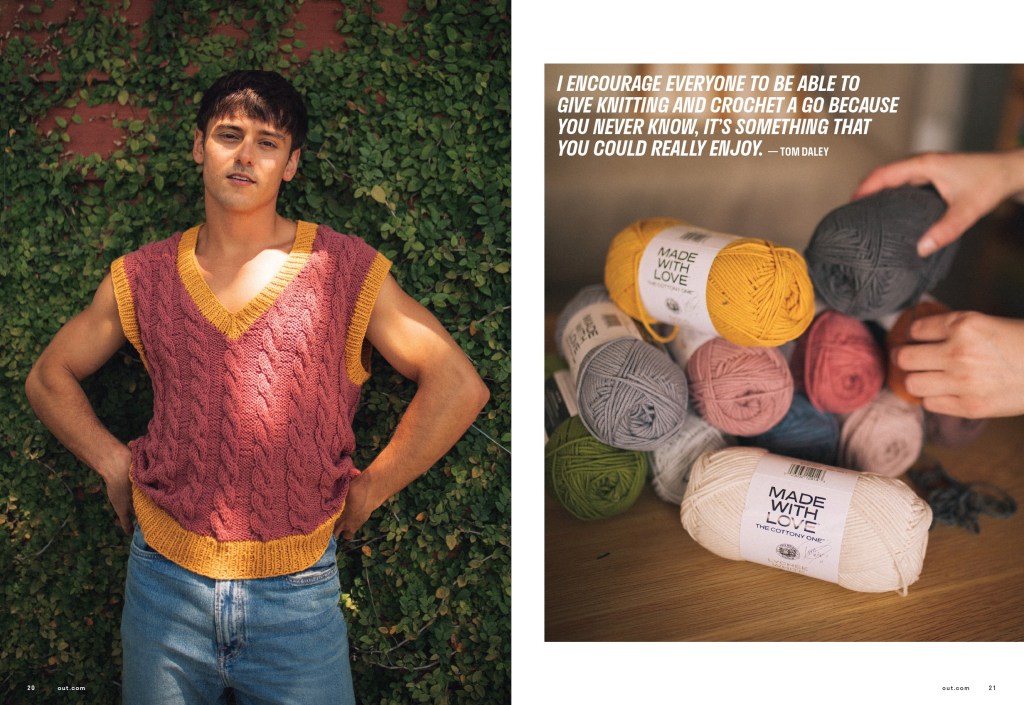 Interview with Olympic diver Tom Daley about his knitwear brand Made With Love, from the September/October 2023 issue of Out. Read here.